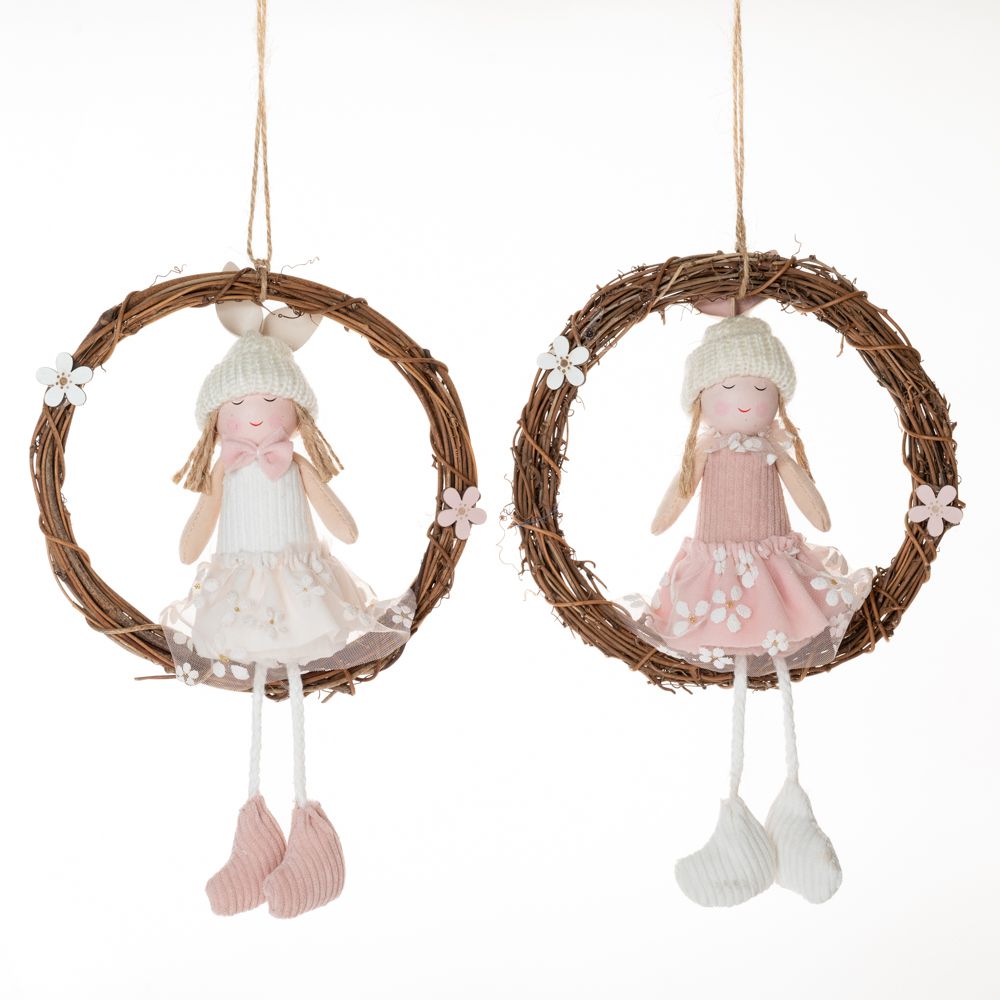 Στεφάνι rattan με κοριτσάκια κρεμαστό 18χ5χ27εκ.2 σχέδια.